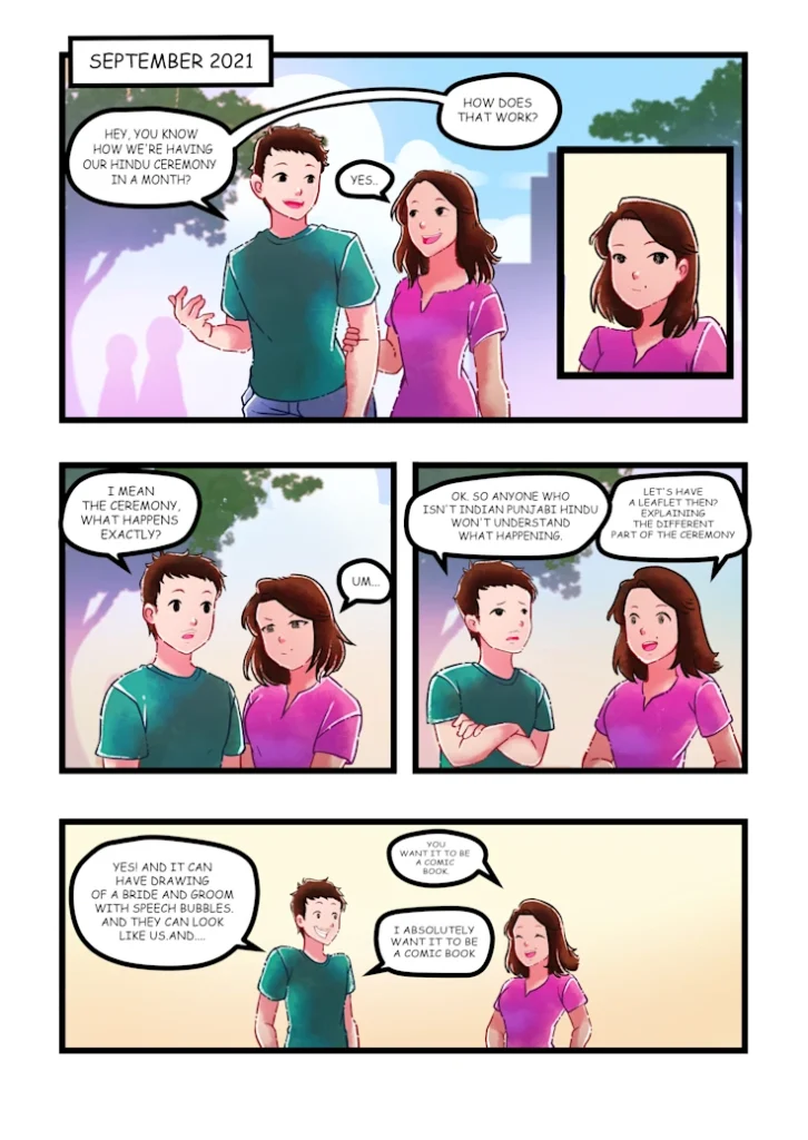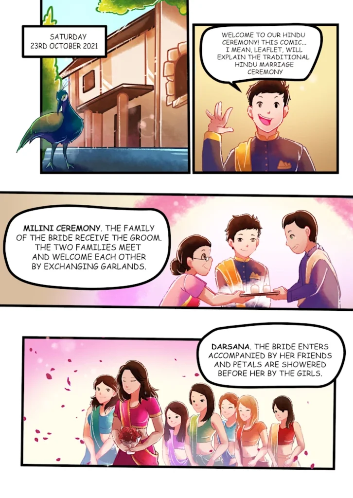 We are delighted to be a part of our client’s special day. The idea of this comic project is to let the guest know the details of the Indian wedding ceremony.